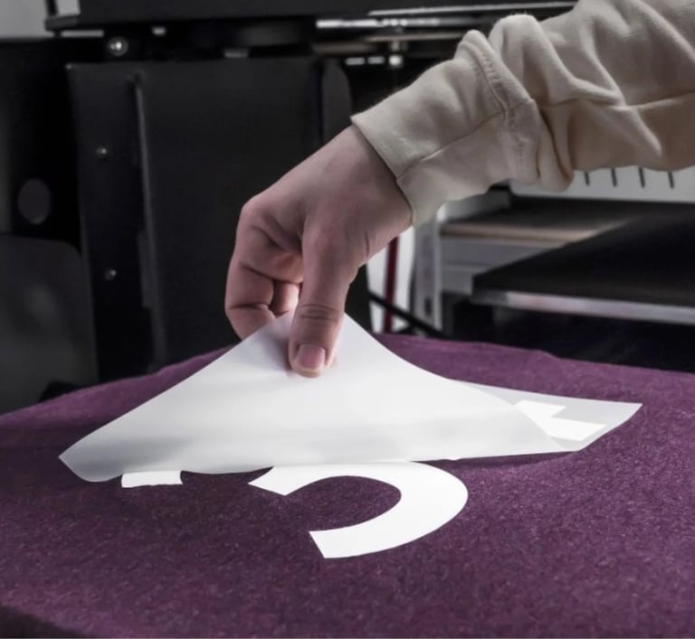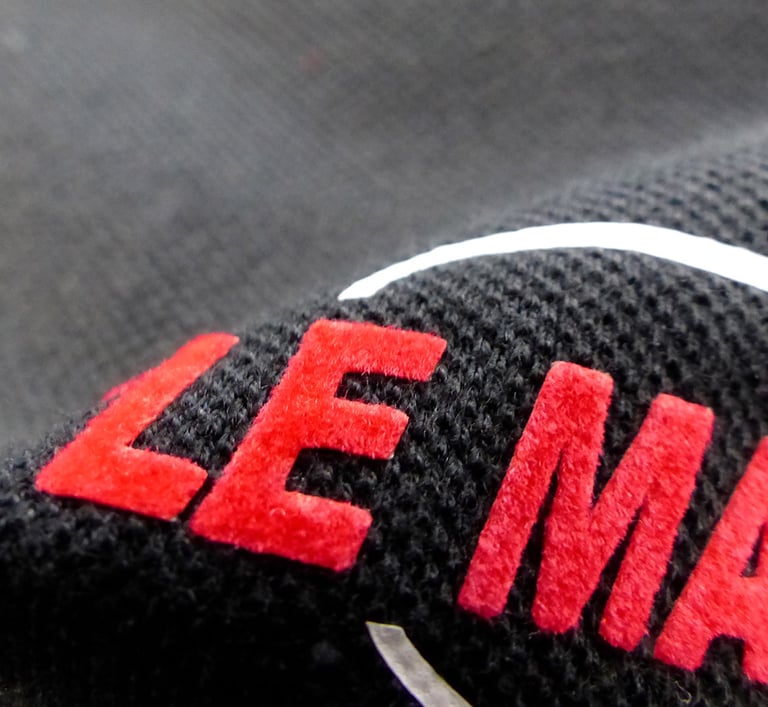 Le flocage consiste à transférer un motif sur textile grâce à un film thermocollant, appliqué à l’aide d’une presse à chaud. Après découpe, échenillage (nettoyage du motif) et application, le visuel prend corps sur le support, avec un aspect net et résistant.